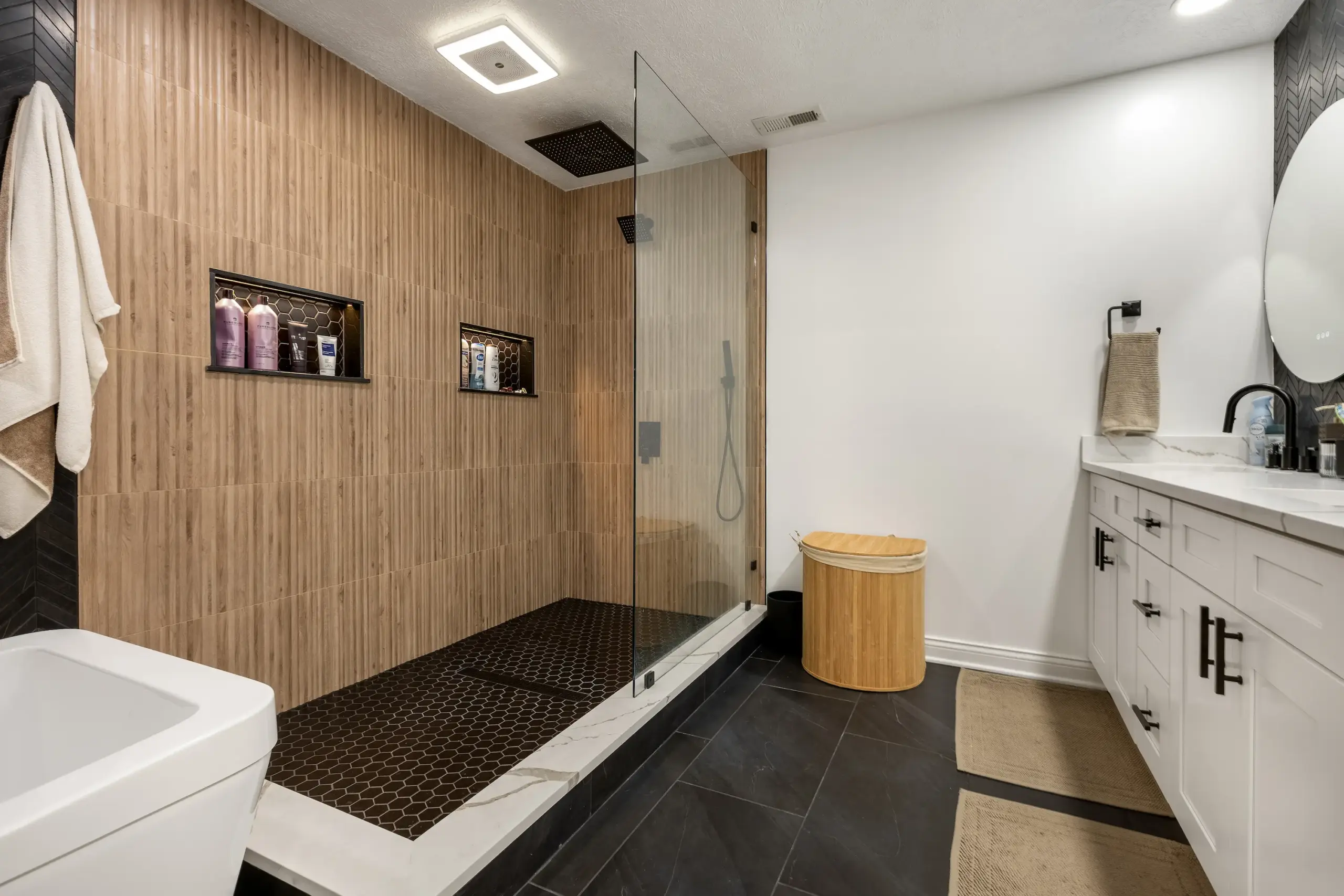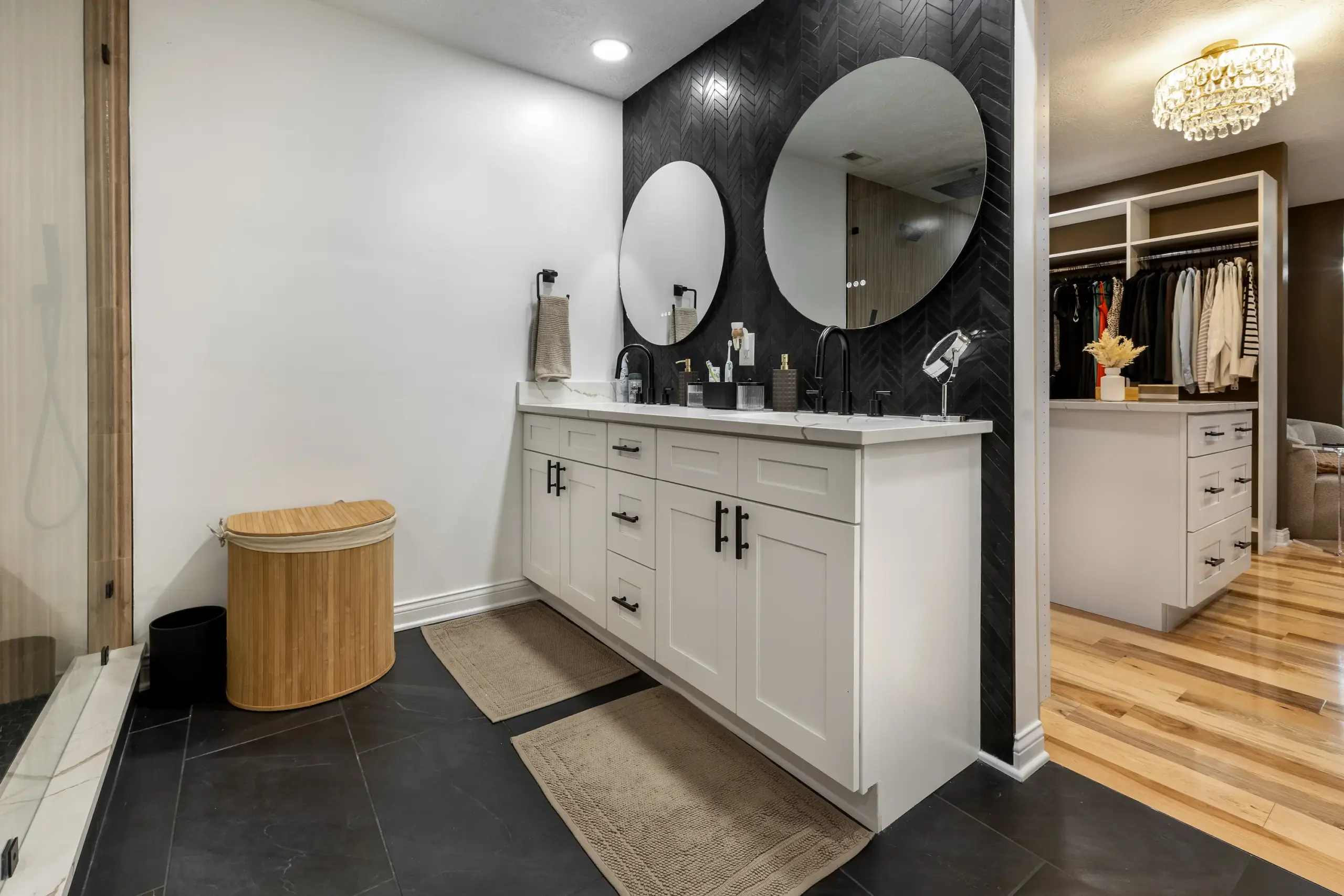 Spa-like upgrades, walk-in showers, heated flooring, and timeless tilework.